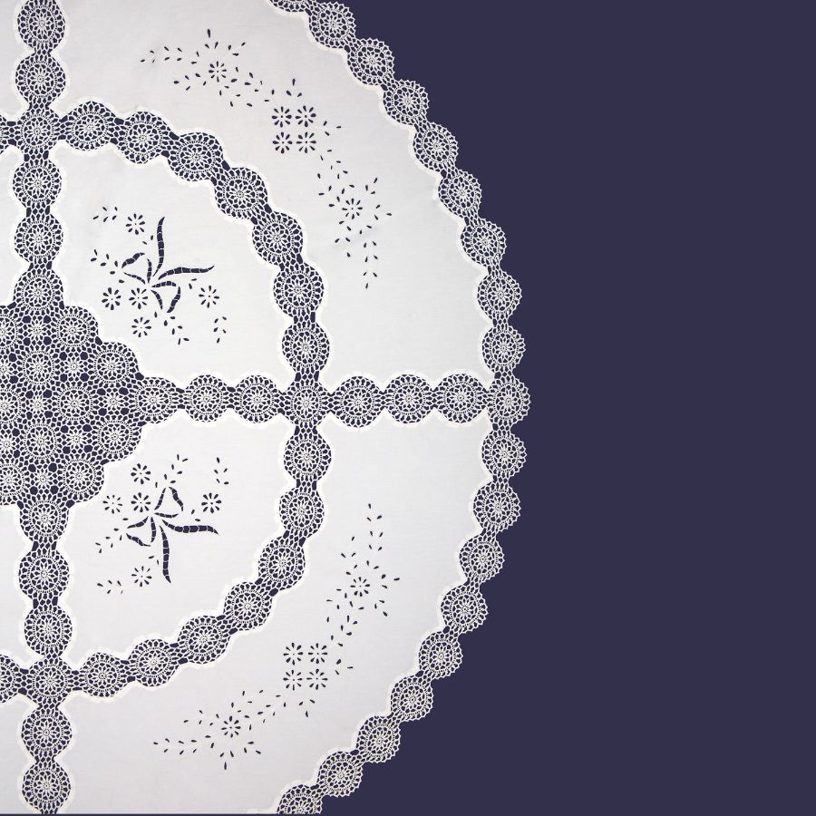 Ürün İçeriği: 1 Ad. Yuvarlak Dantel ve Beyaz İş Kombin Masa Örtüsü